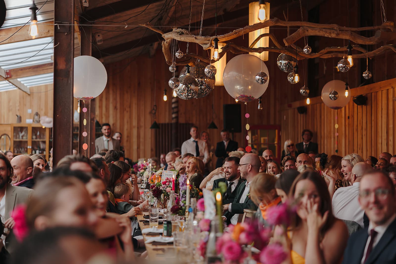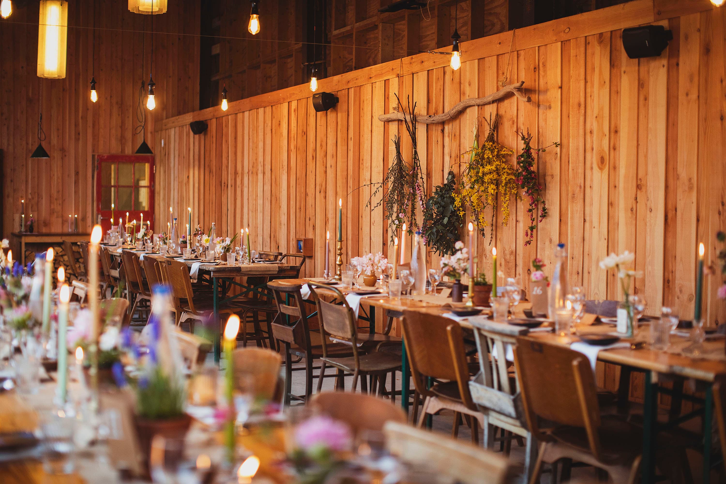 Our big cedar barn is where you would have your formal feast style meal. It's the perfect space for food, drink and your evening party. The space can be re-organised to provide room for entertainment, dancing and seating. With our new cosy firelit bar area, there's a space for everyone to enjoy.